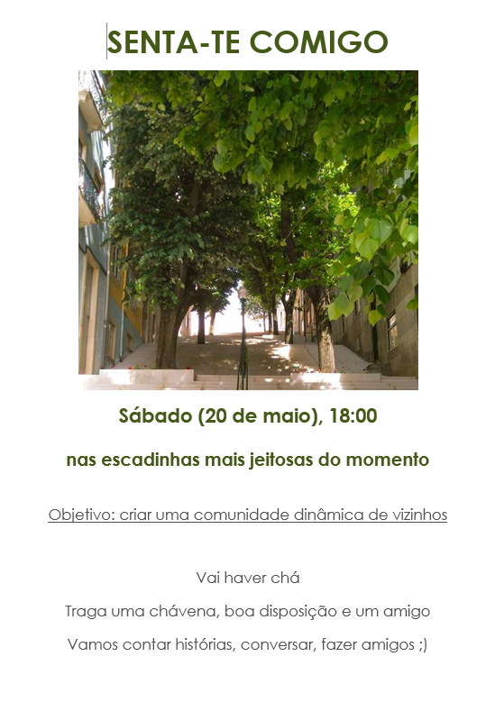 Um Jardim a cada Porta é uma iniciativa promovida pela nossa comunidade que tem como objetivo plantar e aflorar as caldeiras das Tílias e Olaias, jardins naturais, nas escadinhas da Rua Cidade de Manchester!